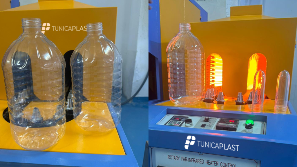 Bonne nouvelle : Tunicaplast démarre la production en série de bidons 5 litres en PET via notre atelier de soufflage bi-étirage.