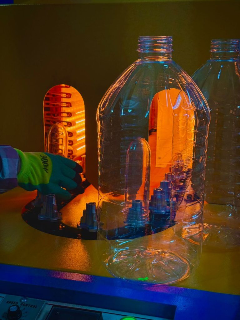 Nous ne fabriquons pas les préformes : nous les sourçons auprès de fournisseurs certifiés, puis nous soufflons et livrons des bidons finis, prêts à être remplis sur vos lignes.